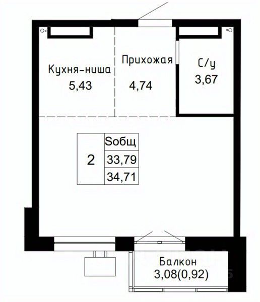 Продаётся 2-комнатная квартира в строящемся доме (Дом 7 (Секция 7.1, 7.2)), срок сдачи: IV-кв. 2027, общей площадью 34.71 кв.м., на 13 этаже.