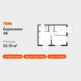 Продаётся 2-комн. квартира площадью 53,1 кв.м на 6 этаже 17 этажного дома (Корпус 1, Секция 1) проекта ПИК Борисенко 48. Светлый просторный подъезд на уровне земли, функциональная планировка, большие окна, c отделкой.