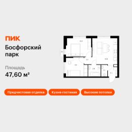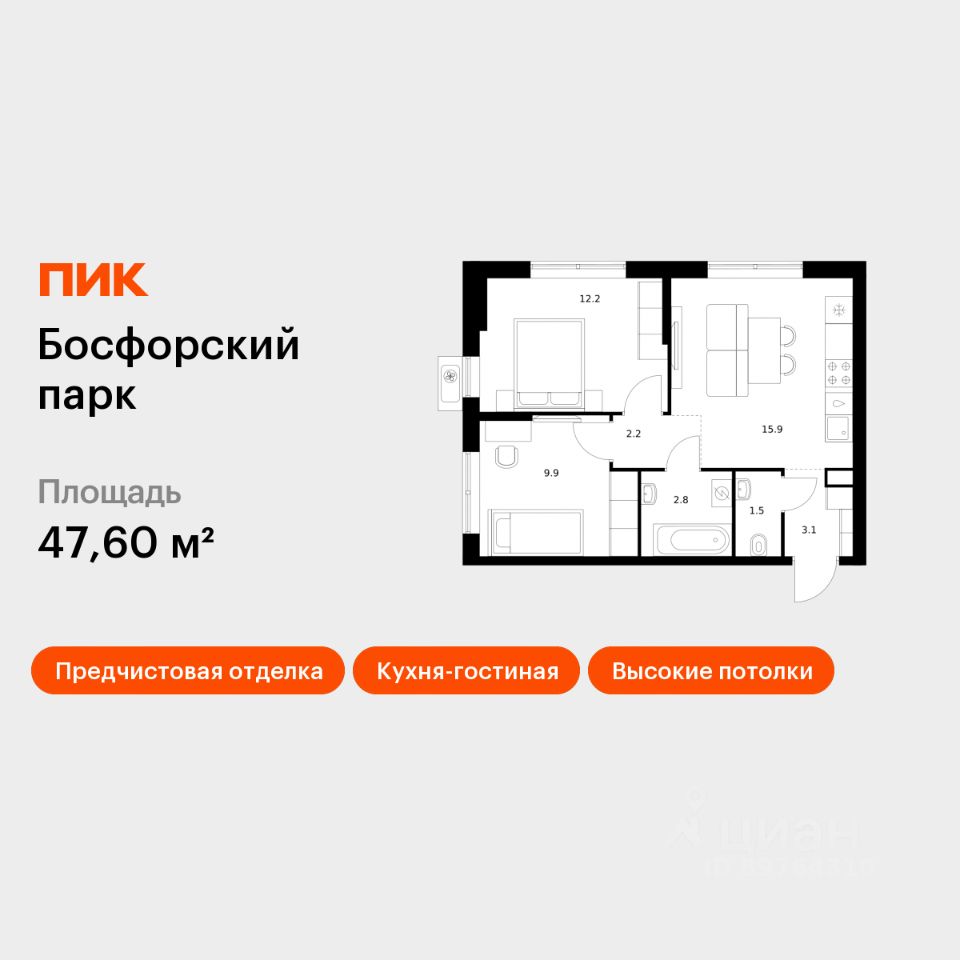 Продаётся 2-комн. квартира площадью 47,6 кв.м на 2 этаже 9 этажного дома (Корпус 10, Секция 1) проекта ПИК Босфорский парк. Светлый просторный подъезд на уровне земли, функциональная планировка, большие окна, предчистовая отделка.
