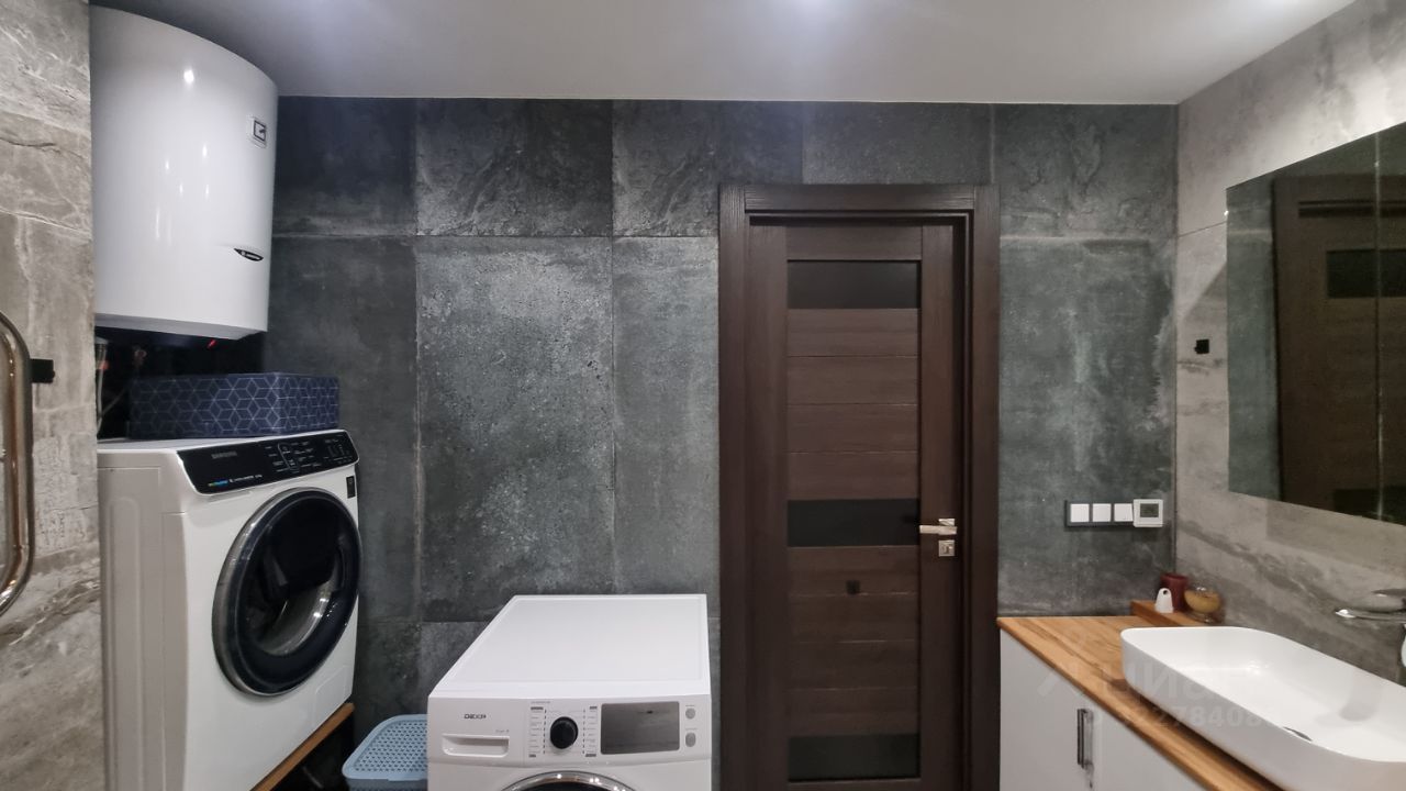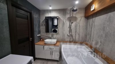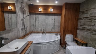 Ванная: теплый пол с программированием, титан на 80л, асимметричная ванна 170х100, на полу и стенах крупноформатный керамогранит, пол опущен на 2см. Натяжной потолок, тумба и подвесная полка с зеркалом, все, что деревянное - массив ясеня, покрытый маслом, тумба под раковину на заказ. Гидроизоляция пола, водонагреватель на 80л, фильтры и редукторы на хвс и гвс.