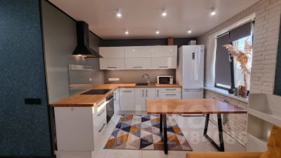 Кухня: гарнитур с доводчиками, варочная панель haier, посудомоечная машина electrolux, раковина из искуственного камня, фильтр на воду, обеденный декоративный кирпич и краска, вытяжка, обеденный стол. На потолке гкл, на полу керамогранит.