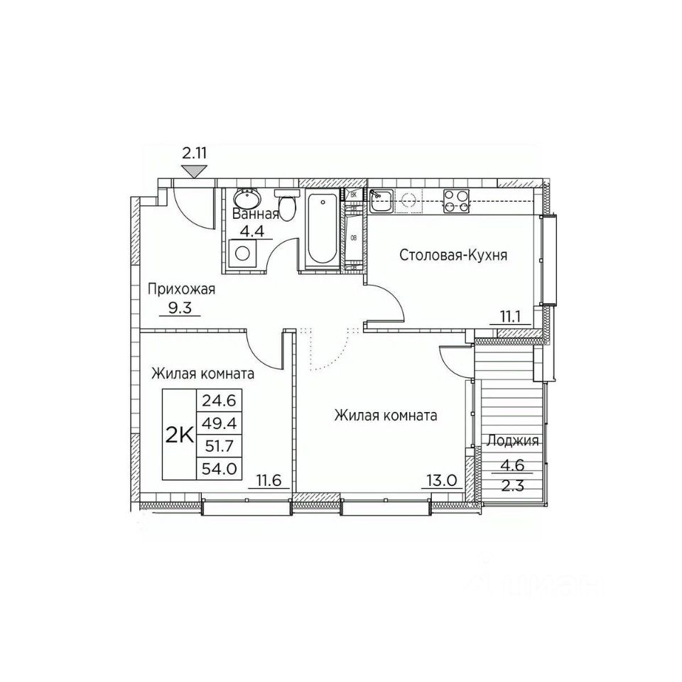 Площадь кухни11,1 м²