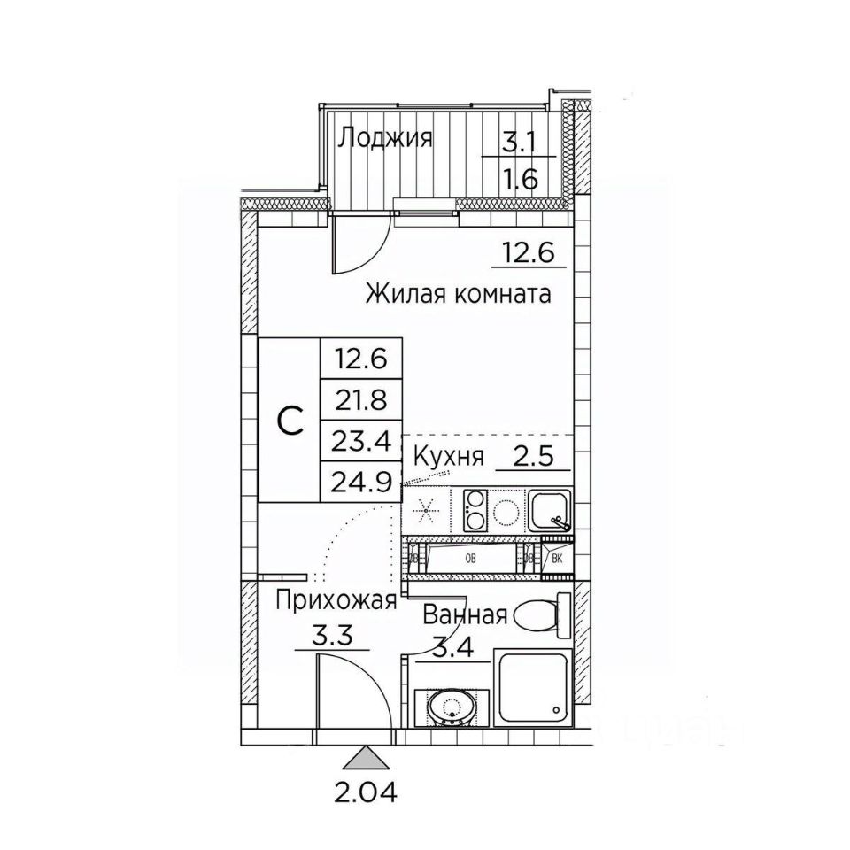 Общая площадь25 м²