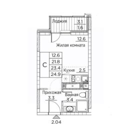 Жилая площадь12,6 м²
