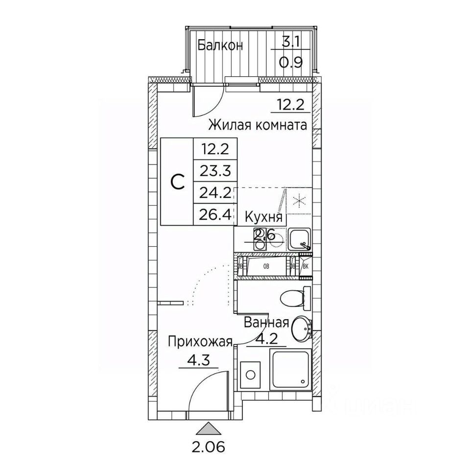 Общая площадь26,4 м²