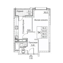 Общая площадь38 м²