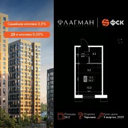 Продаётся квартира-студия номер 119 общей площадью 26.2 кв.м. на 11-м этаже 30 этажного дома. Отделка Whitebox. Цена с учётом скидки!