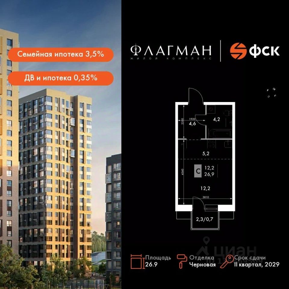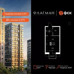 Продаётся 1-к квартира номер 203 общей площадью 26.9 кв.м. на 18-м этаже 30 этажного дома. Отделка Whitebox. Цена с учётом скидки!