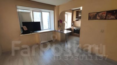 Светлая и уютная однокомнатная квартира на Народном проспекте во Владивостоке. Объект находится в хорошем состоянии: выполнен косметический ремонт, стены под покраску, установлен кухонный гарнитур, частично сохранена мебель.