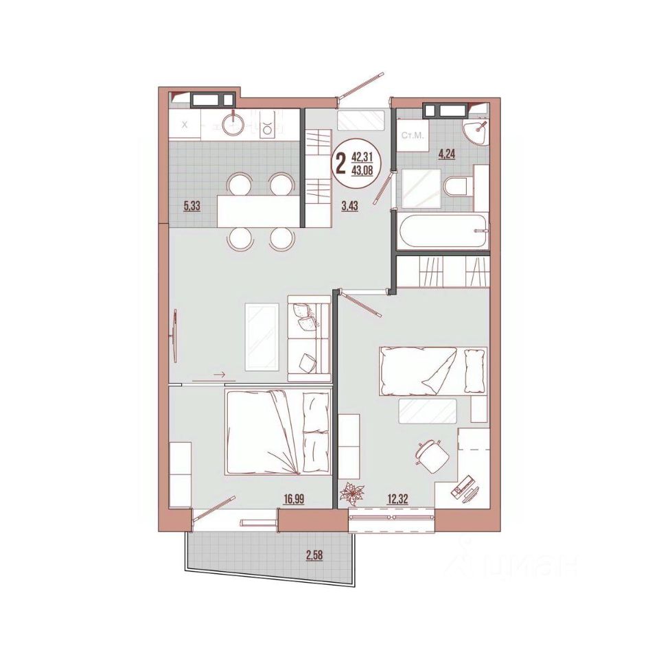 Продаётся 2-комнатная квартира в строящемся доме (Корпус 1), срок сдачи: III-кв. 2026, общей площадью 43.08 кв.м., на 10 этаже. Новый жилой дом от застройщика "СЗ Стоунлэнд" расположен по адресу: Россия, Приморский край, Владивосток, улица Адмирала Юмашева