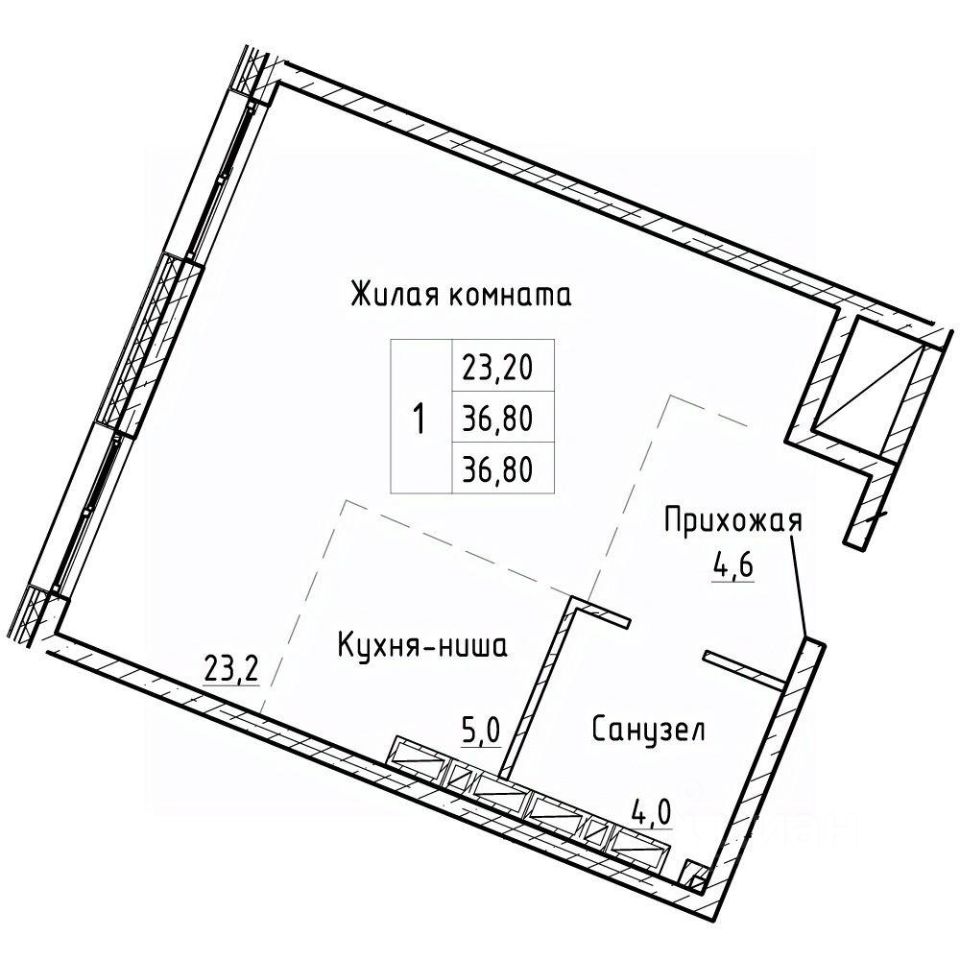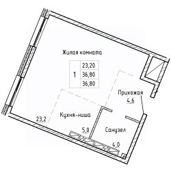 Продаётся 1-комнатная квартира в строящемся доме (Корпус 1), срок сдачи: II-кв. 2026, общей площадью 36.8 кв.м., на 19 этаже.