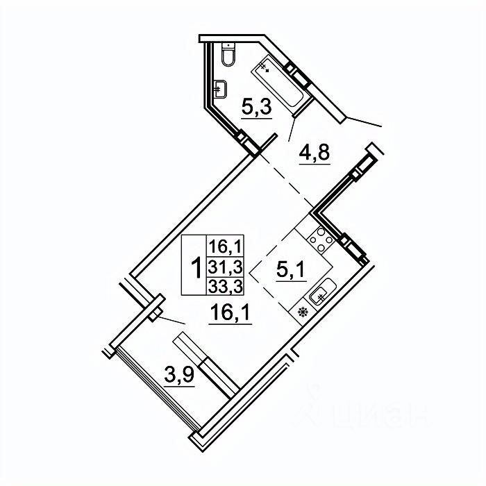 33,3 м²