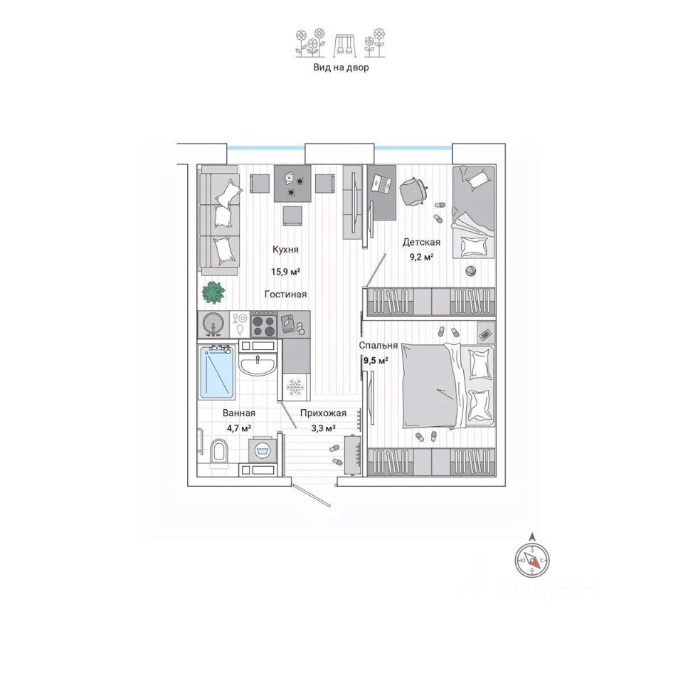 42,9 м²