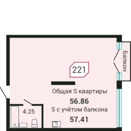 Продаётся 1-комнатная квартира в сданном доме (Дом 5В), срок сдачи: II-кв. 2022, общей площадью 56.8 кв.м., на 3 этаже. Жилой комплекс представляет собой застройку, состоящую из 6-этажных монолитных зданий.