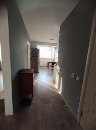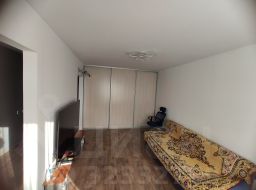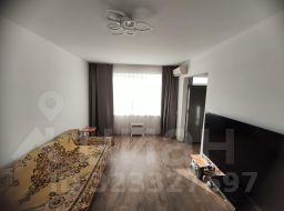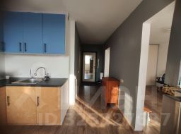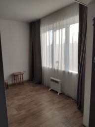 В просторной комнате установлен кондиционер, встроенный шкаф купе. На кухне достаточно места для готовки и хранения инвентаря. Вся мебель и техника остается новым собственникам.