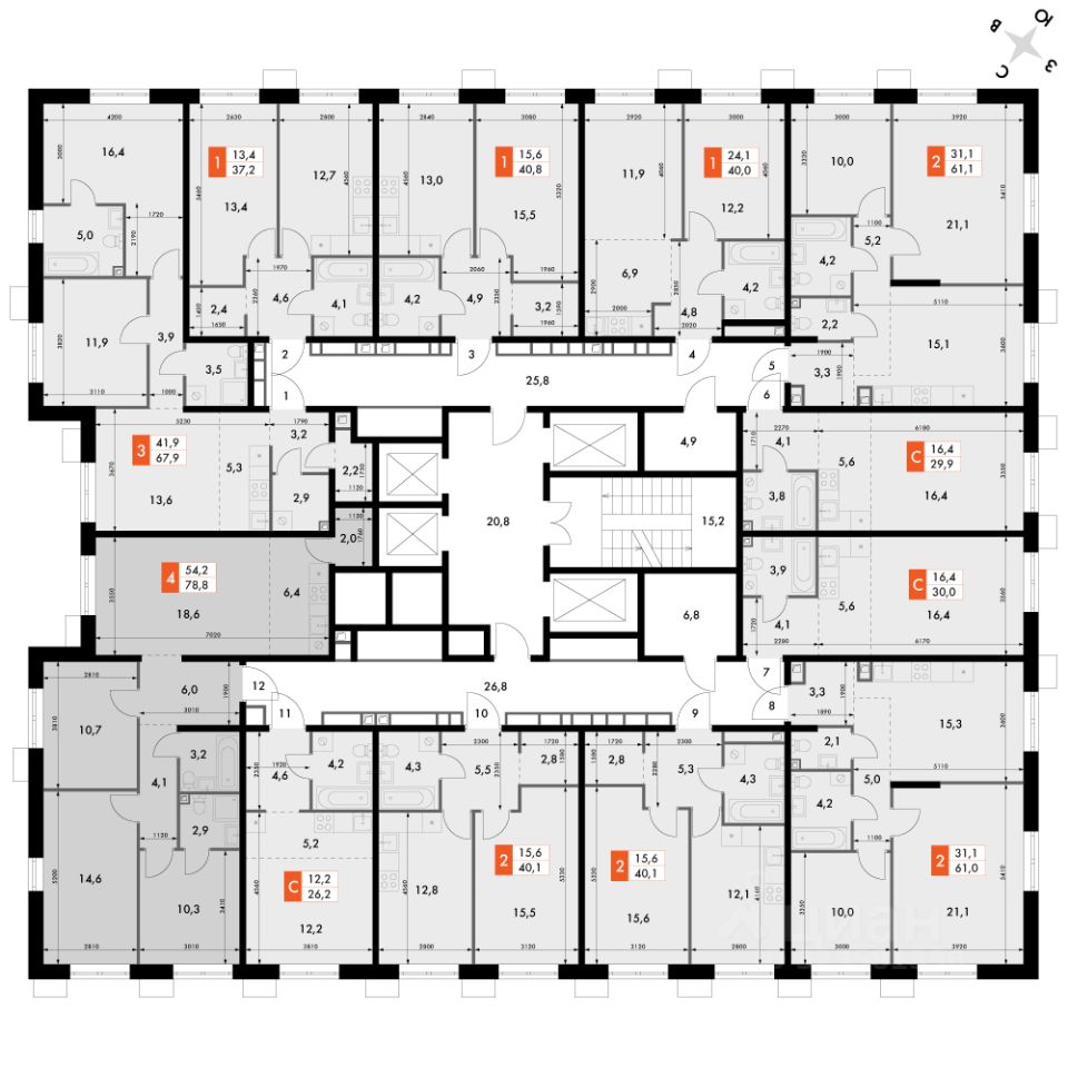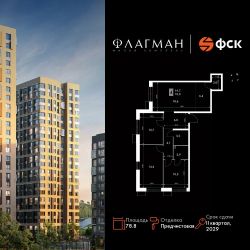 Продаётся 4-к квартира номер 12 общей площадью 78.8 кв.м. на 2-м этаже 30 этажного здания. Отделка Whitebox. Цена с учётом скидки.