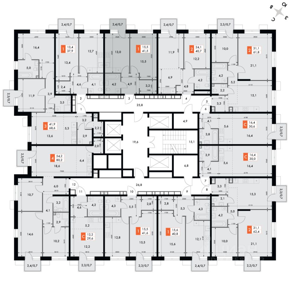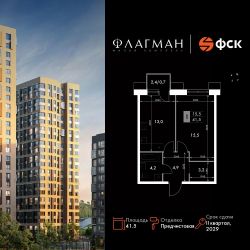 Продаётся 1-к квартира номер 75 общей площадью 41.5 кв.м. на 8-м этаже 30 этажного здания. Отделка Whitebox. Цена с учётом скидки.
