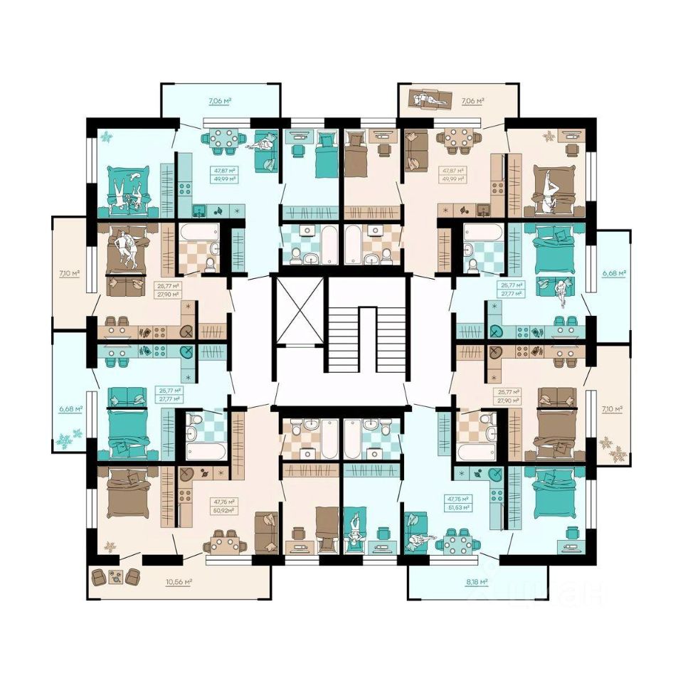Квартиры формата Smart Comfort + (смарт комфорт +) площадью от 32 кв. м до 136 кв. м предоставляют свободу в реализации планировочных решений, а высота потолков 2,7 м с увеличенными панорамными окнами 2,45 м обеспечивают высокий уровень естественного освещения и открывают завораживающий обзор на лесной массив загородной местности.