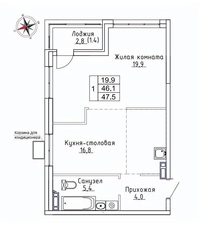 Продаётся 1-комнатная квартира в строящемся доме (Дом 1), срок сдачи: III-кв. 2026, общей площадью 47.5 кв.м., на 2 этаже. ЖК "Новый" - это: