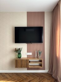 Вся мебель изготовлена на заказ, встроенная техника — новая, на гарантии. Металлическая входная дверь для вашей безопасности.