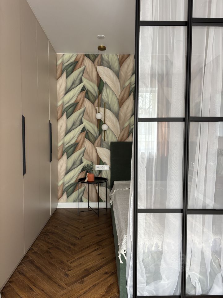Умное зонирование на отдельную спальню ,уютную гостиную и практичную кухню .