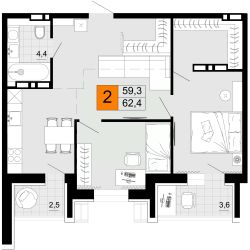 Продаётся 2-комнатная квартира в строящемся доме (Дом 1 (2 этап)), срок сдачи: III-кв. 2026, общей площадью 62.4 кв.м., на 10 этаже. "Горизонты" - новый жилой комплекс в самом центре Уссурийска.