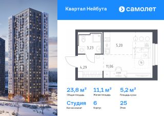 Строим кварталы для жизни с заботой о будущем. Предлагается квартира студия комфорт-класса 23,78 кв.м в корпусе 6 на 25 этаже, в ЖК "Квартал Нейбута"