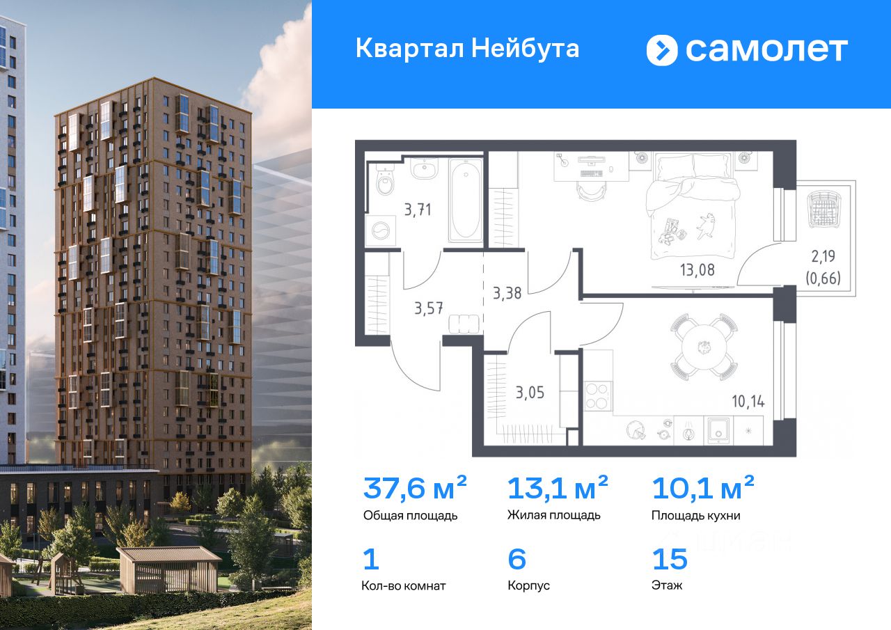 Строим кварталы для жизни с заботой о будущем. Предлагается 1-комнатная квартира комфорт-класса 37,61 кв.м в корпусе 6 на 15 этаже, в ЖК "Квартал Нейбута"