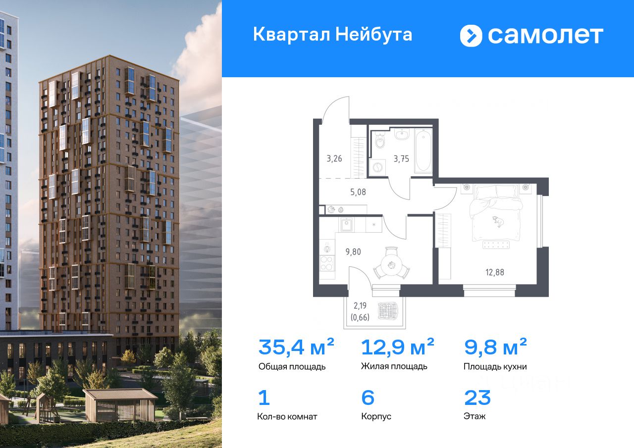 Строим кварталы для жизни с заботой о будущем. Предлагается 1-комнатная квартира комфорт-класса 35,43 кв.м в корпусе 6 на 23 этаже, в ЖК "Квартал Нейбута"