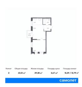 Строим кварталы для жизни с заботой о будущем. Предлагается 1-комнатная квартира комфорт-класса 43,13 кв.м в корпусе 1.2 на 19 этаже, в ЖК "Квартал Нейбута"