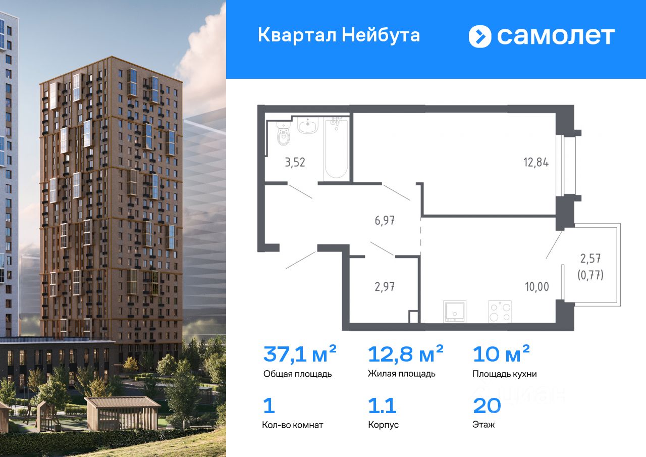 Строим кварталы для жизни с заботой о будущем. Предлагается 1-комнатная квартира комфорт-класса 37,07 кв.м в корпусе 1.1 на 20 этаже, в ЖК "Квартал Нейбута"
