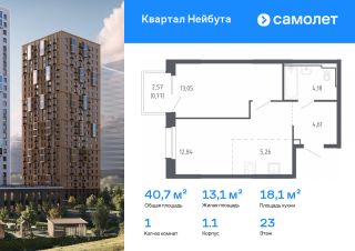 Строим кварталы для жизни с заботой о будущем. Предлагается 1-комнатная квартира комфорт-класса 40,71 кв.м в корпусе 1.1 на 23 этаже, в ЖК "Квартал Нейбута"