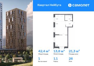 Строим кварталы для жизни с заботой о будущем. Предлагается 1-комнатная квартира комфорт-класса 42,36 кв.м в корпусе 1.1 на 26 этаже, в ЖК "Квартал Нейбута"