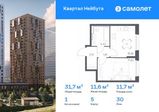 Строим кварталы для жизни с заботой о будущем. Предлагается 1-комнатная квартира комфорт-класса 31,65 кв.м в корпусе 5 на 30 этаже, в ЖК "Квартал Нейбута"
