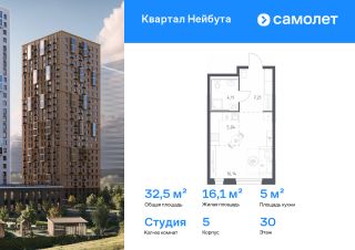 Строим кварталы для жизни с заботой о будущем. Предлагается квартира студия комфорт-класса 32,5 кв.м в корпусе 5 на 30 этаже, в ЖК "Квартал Нейбута"