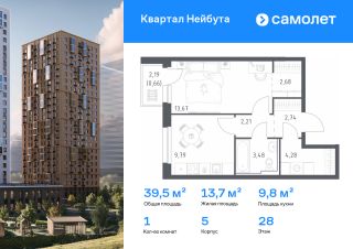 Строим кварталы для жизни с заботой о будущем. Предлагается 1-комнатная квартира комфорт-класса 39,51 кв.м в корпусе 5 на 28 этаже, в ЖК "Квартал Нейбута"