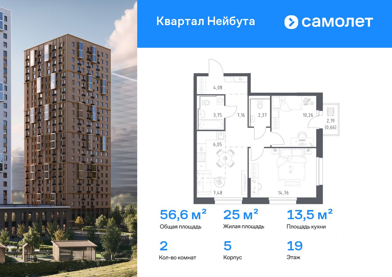 Строим кварталы для жизни с заботой о будущем. Предлагается 2-комнатная квартира комфорт-класса 56,57 кв.м в корпусе 5 на 19 этаже, в ЖК "Квартал Нейбута"