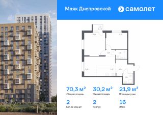 Строим кварталы для жизни с заботой о будущем. Предлагается 2-комнатная квартира комфорт-класса 70,27 кв.м в корпусе 2 на 16 этаже, в ЖК "Маяк Днепровской"
