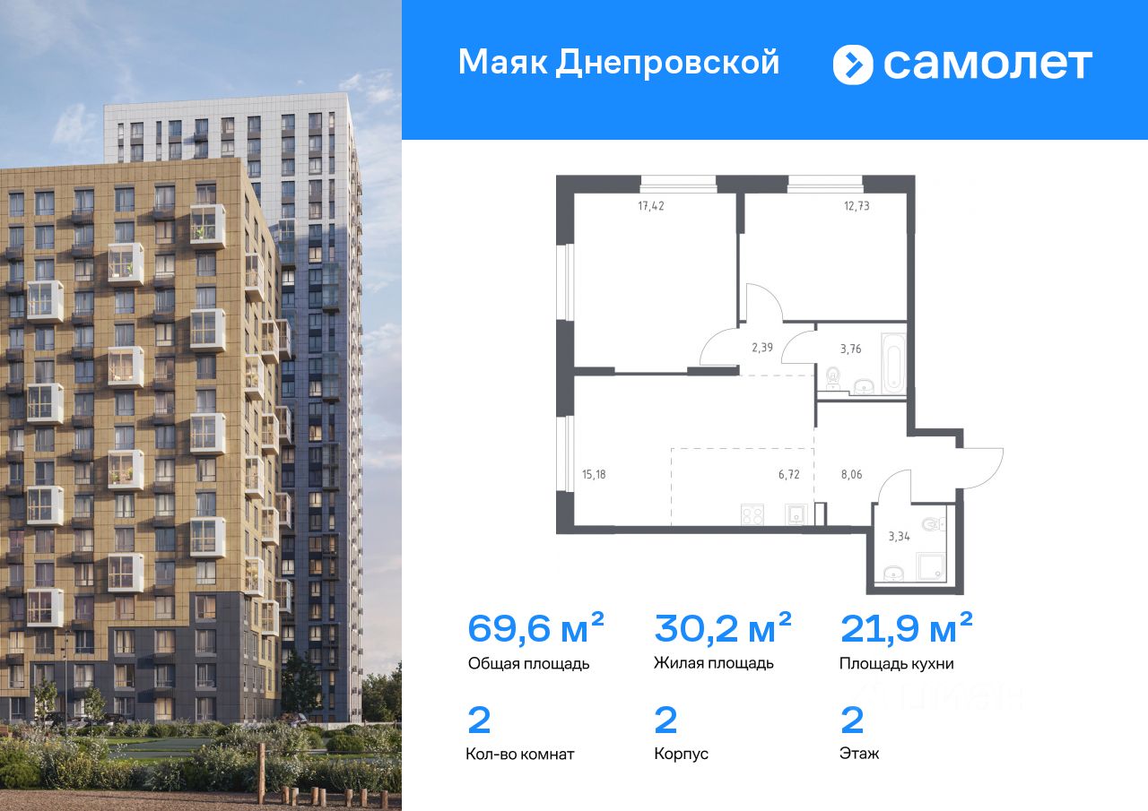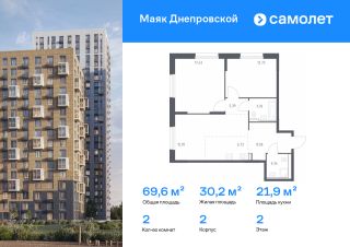 Строим кварталы для жизни с заботой о будущем. Предлагается 2-комнатная квартира комфорт-класса 69,6 кв.м в корпусе 2 на 2 этаже, в ЖК "Маяк Днепровской"