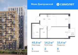 Строим кварталы для жизни с заботой о будущем. Предлагается 1-комнатная квартира комфорт-класса 45,77 кв.м в корпусе 2 на 6 этаже, в ЖК "Маяк Днепровской"