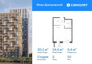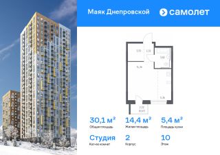 Строим кварталы для жизни с заботой о будущем. Предлагается квартира студия комфорт-класса 30,08 кв.м в корпусе 2 на 10 этаже, в ЖК "Маяк Днепровской"