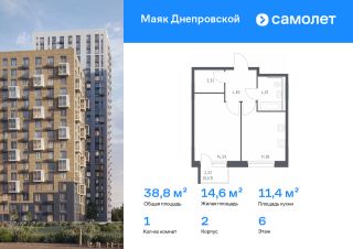 Строим кварталы для жизни с заботой о будущем. Предлагается 1-комнатная квартира комфорт-класса 38,79 кв.м в корпусе 2 на 6 этаже, в ЖК "Маяк Днепровской"