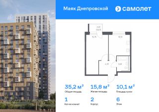 Строим кварталы для жизни с заботой о будущем. Предлагается 1-комнатная квартира комфорт-класса 35,21 кв.м в корпусе 2 на 6 этаже, в ЖК "Маяк Днепровской"