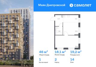 Строим кварталы для жизни с заботой о будущем. Предлагается 1-комнатная квартира комфорт-класса 46 кв.м в корпусе 2 на 14 этаже, в ЖК "Маяк Днепровской"