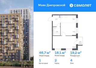 Строим кварталы для жизни с заботой о будущем. Предлагается 1-комнатная квартира комфорт-класса 46,67 кв.м в корпусе 2 на 4 этаже, в ЖК "Маяк Днепровской"