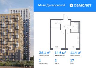 Строим кварталы для жизни с заботой о будущем. Предлагается 1-комнатная квартира комфорт-класса 38,12 кв.м в корпусе 2 на 17 этаже, в ЖК "Маяк Днепровской"