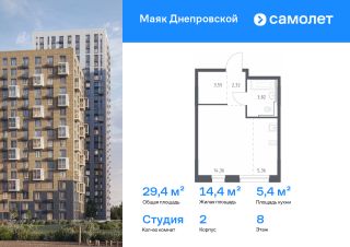 Строим кварталы для жизни с заботой о будущем. Предлагается квартира студия комфорт-класса 29,41 кв.м в корпусе 2 на 8 этаже, в ЖК "Маяк Днепровской"