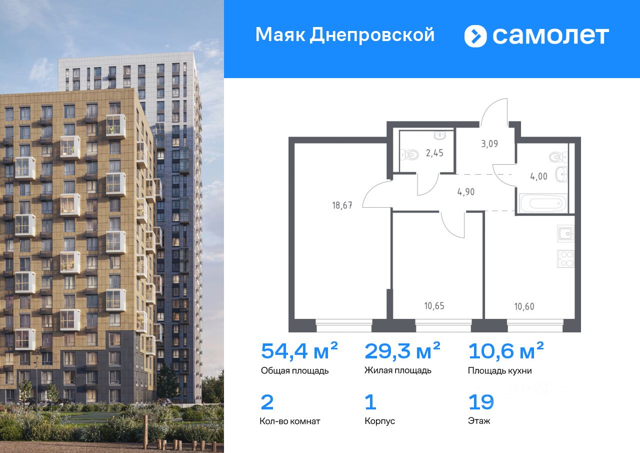 Строим кварталы для жизни с заботой о будущем. Предлагается 2-комнатная квартира комфорт-класса 54,36 кв.м в корпусе 1 на 19 этаже, в ЖК "Маяк Днепровской"