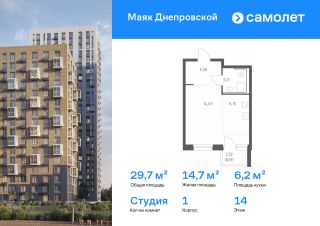 Строим кварталы для жизни с заботой о будущем. Предлагается квартира студия комфорт-класса 29,7 кв.м в корпусе 1 на 14 этаже, в ЖК "Маяк Днепровской"