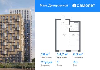 Строим кварталы для жизни с заботой о будущем. Предлагается квартира студия комфорт-класса 29,03 кв.м в корпусе 1 на 30 этаже, в ЖК "Маяк Днепровской"